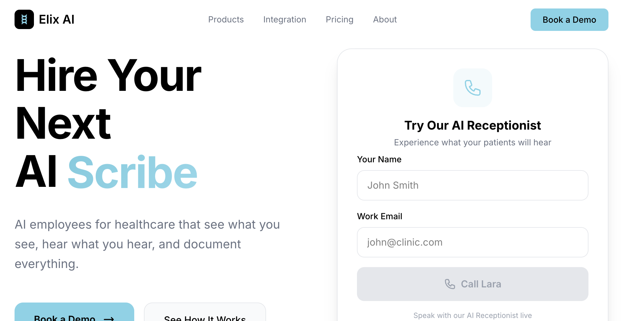 AI employees for healthcare — scribe, receptionist, nurse, medical coder. See what you see, hear what you hear, document everything.